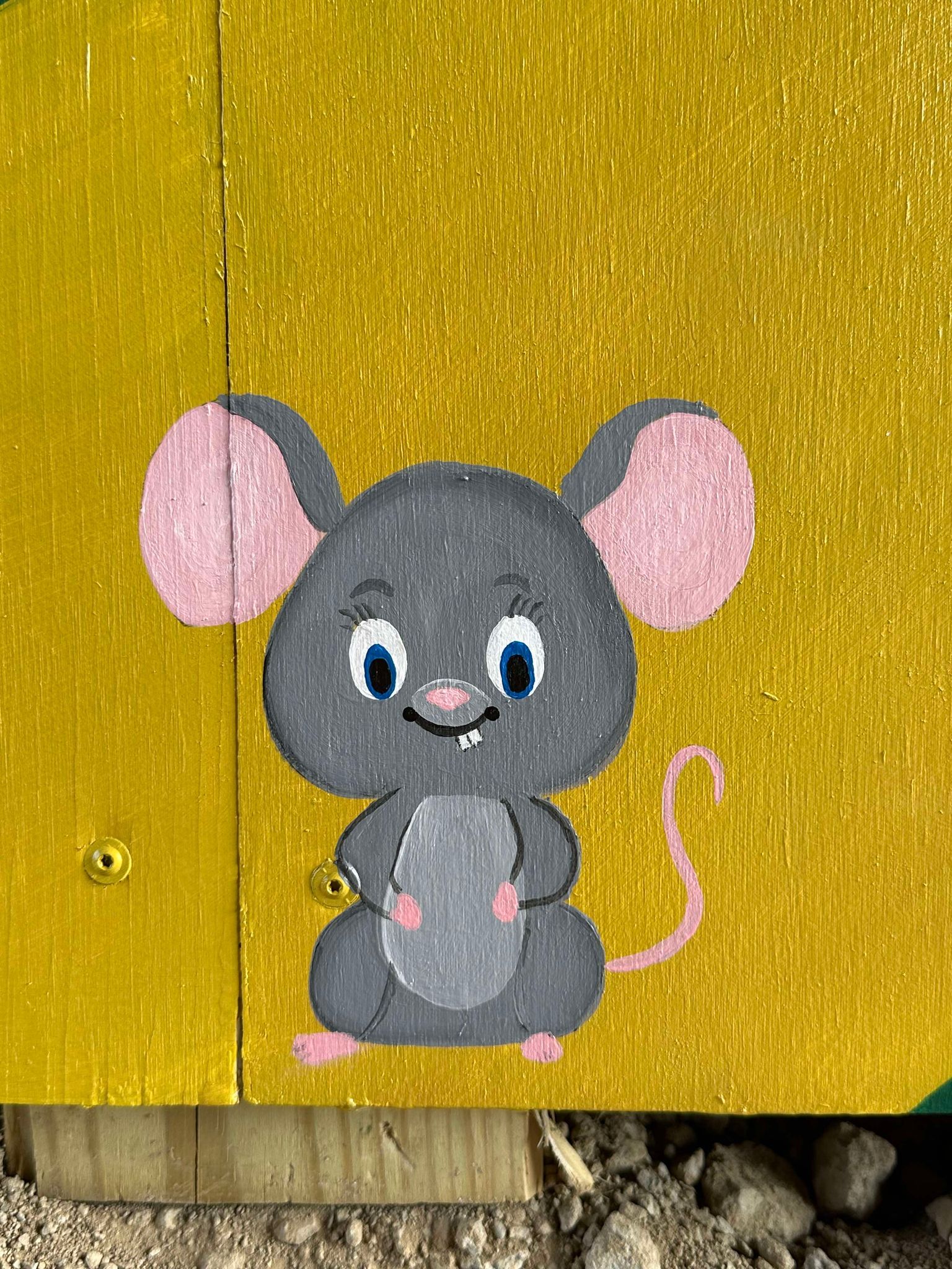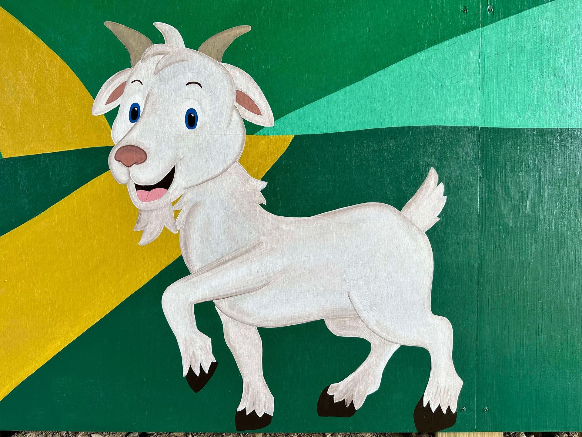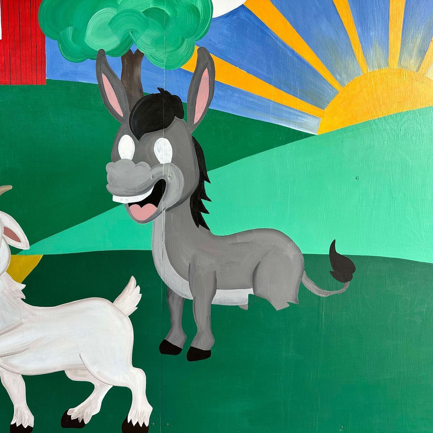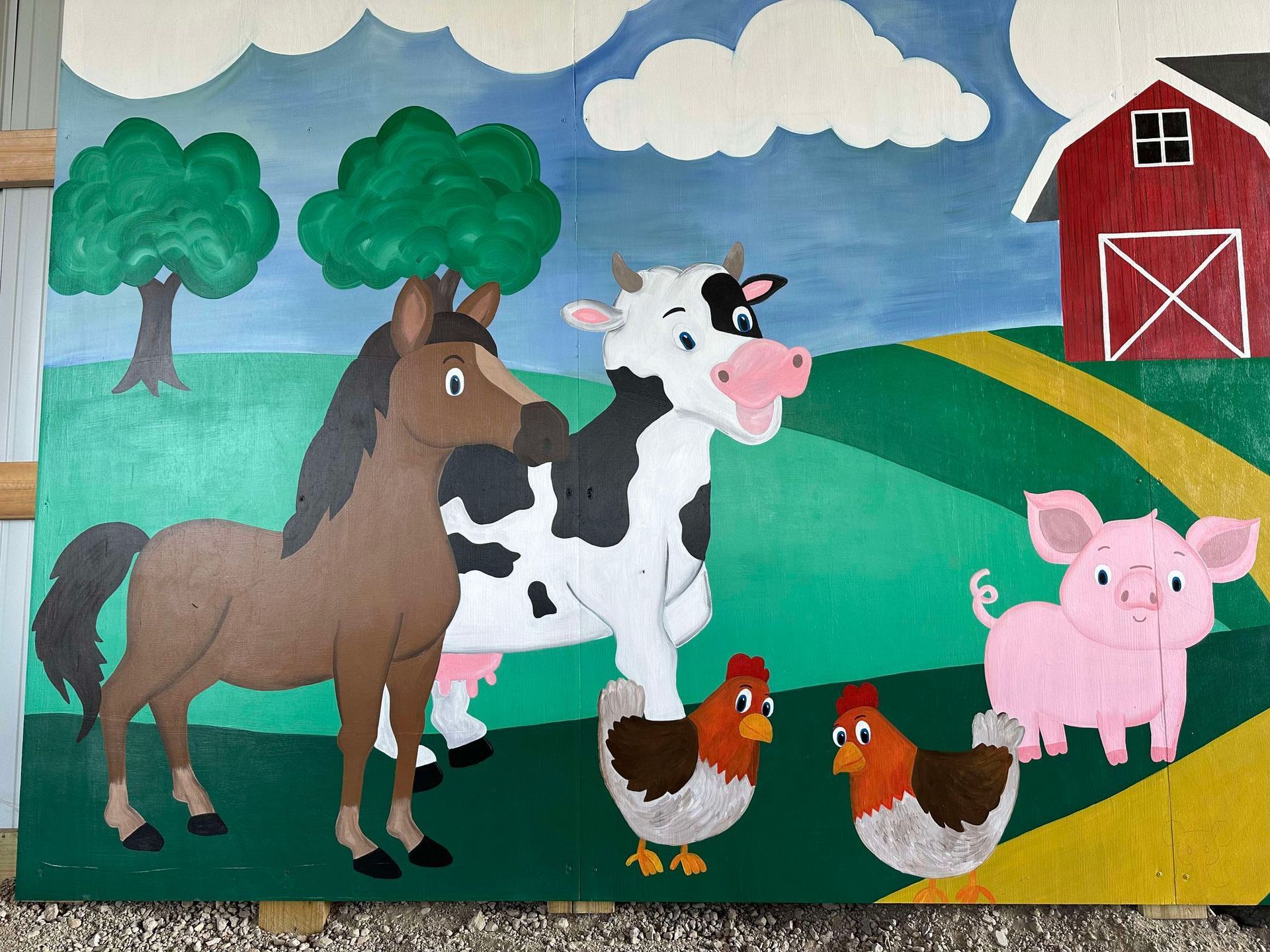 We were torn between going with a picturesque farm scene or a fun cartoon style. Ultimately we decided to cater to the kiddos since our new Adventure Barn where the mural is located is a play place for kids!